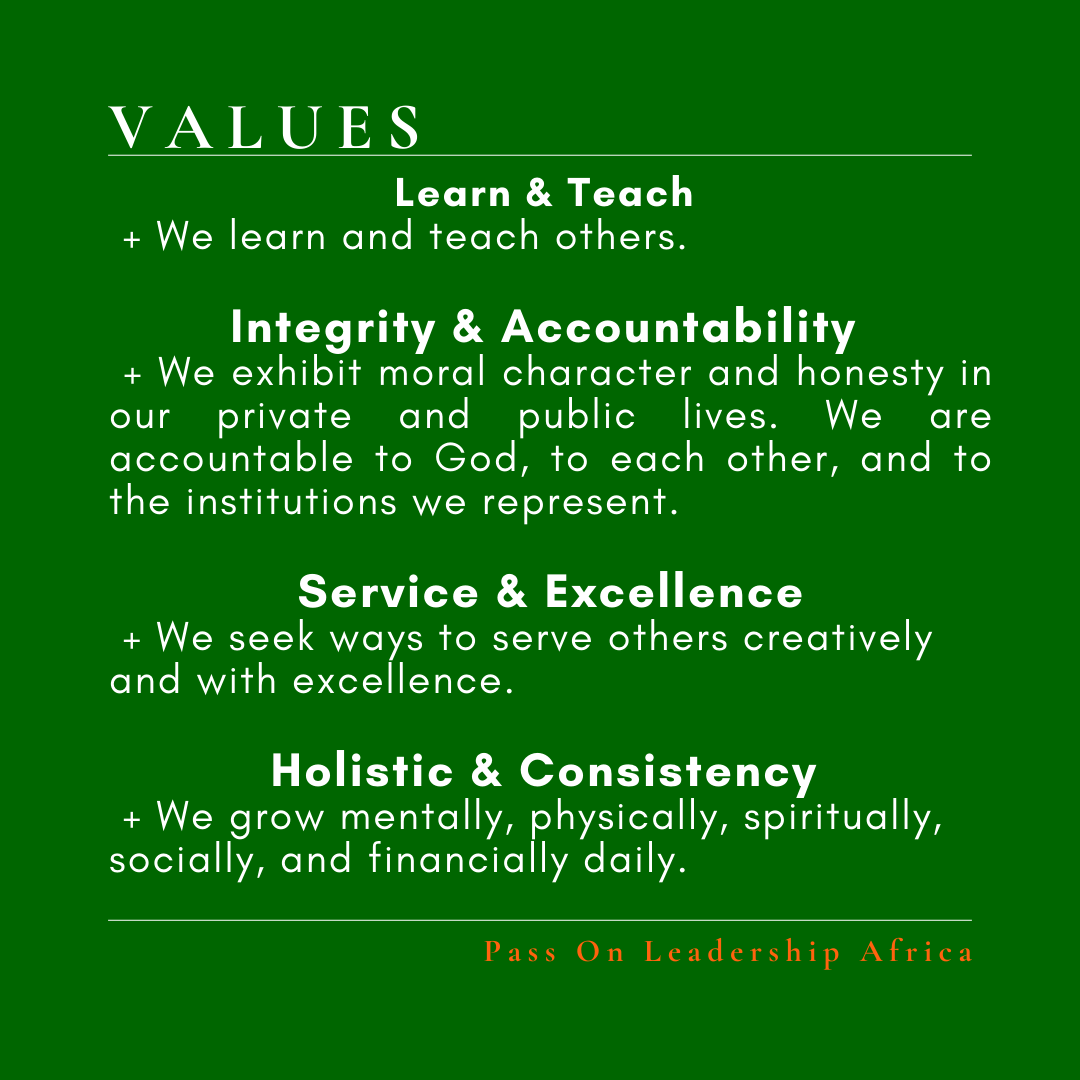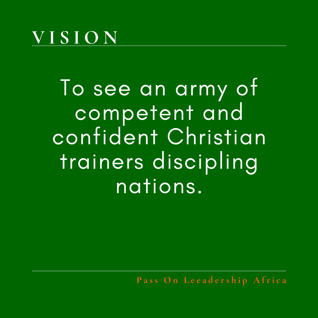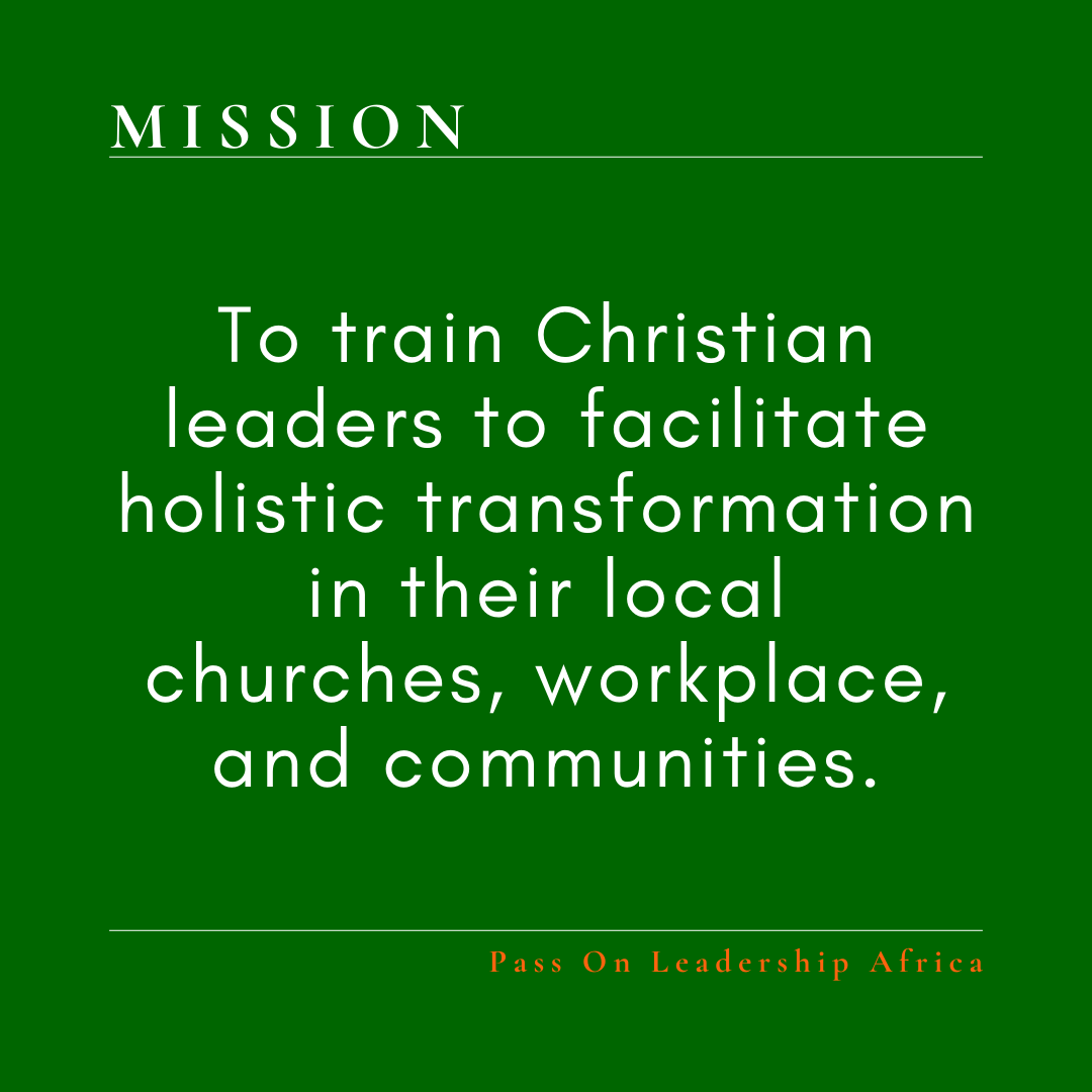 We are a Christian education ministry, under Pass On Leadership Africa, that equips Christians, church ministers, and marketplace leaders to disciple and build up the body of Christ biblically, holistically, and systematically.